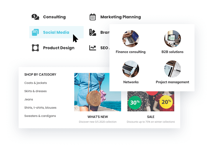 Mix and match content and features from different demos. Easily convert a one-page demo into a multipage site or a store. And vice versa.