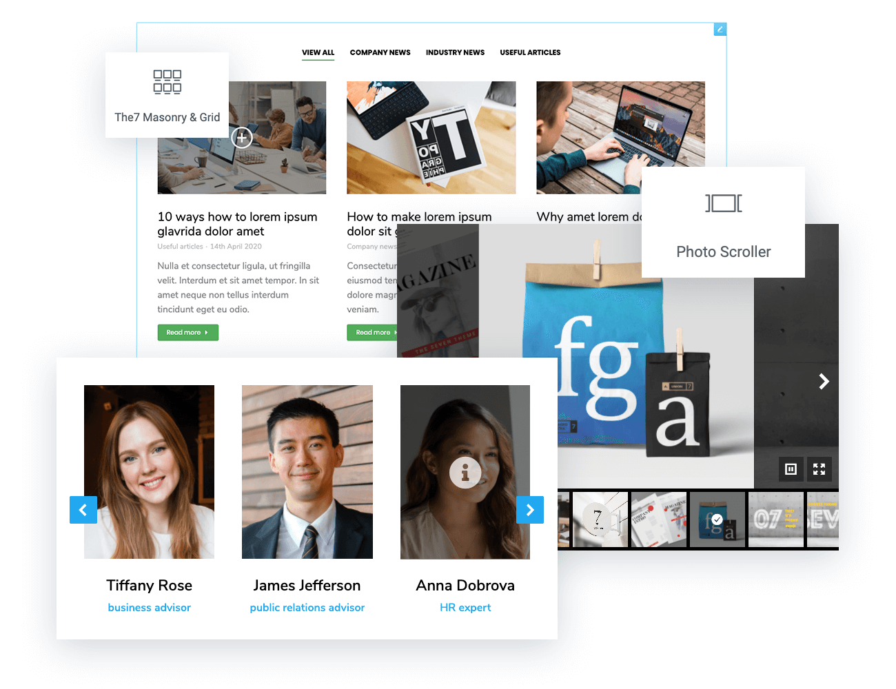 Ever needed to add a portfolio to an agency website? Or maybe you are building a photography site, and want to showcase a large number of photos all neatly organized into albums? And how about a “team” section of a corporate portal? The7 Elements has tools for that, and more: