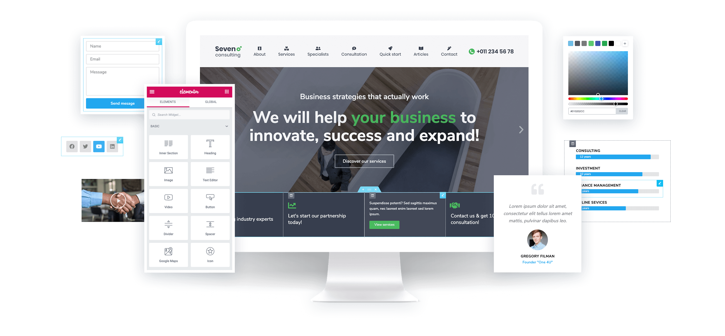The7 is fully integrated with Elementor and WPBakery Page Builder. Change a setting in the Theme Options, and it will propagate across the entire website.
