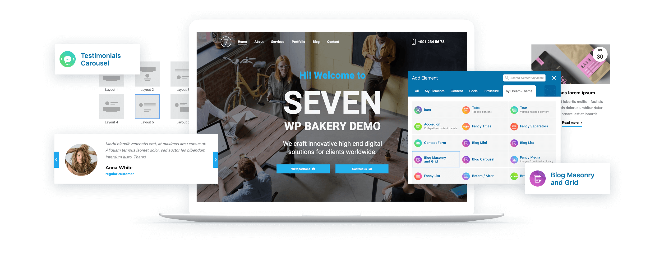 WPBakery (formerly Visual Composer) is the first commercially successful and one of the most popular page builders on the market. The7 was released with WPB support from day one. And has become the most popular premium theme for this page builder on the market!