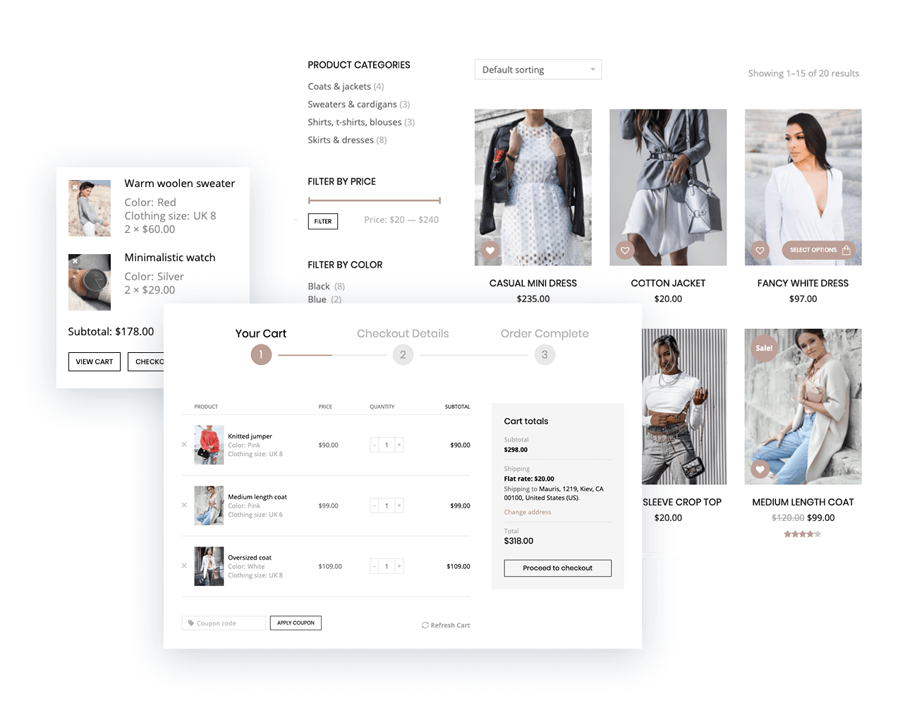 The7 features the dedicated Theme Options screen for numerous WooCommerce settings. Not only can you customize the appearance of products, lists, widgets, and shortcodes, but also cart, checkout, and other WooCommerce pages.