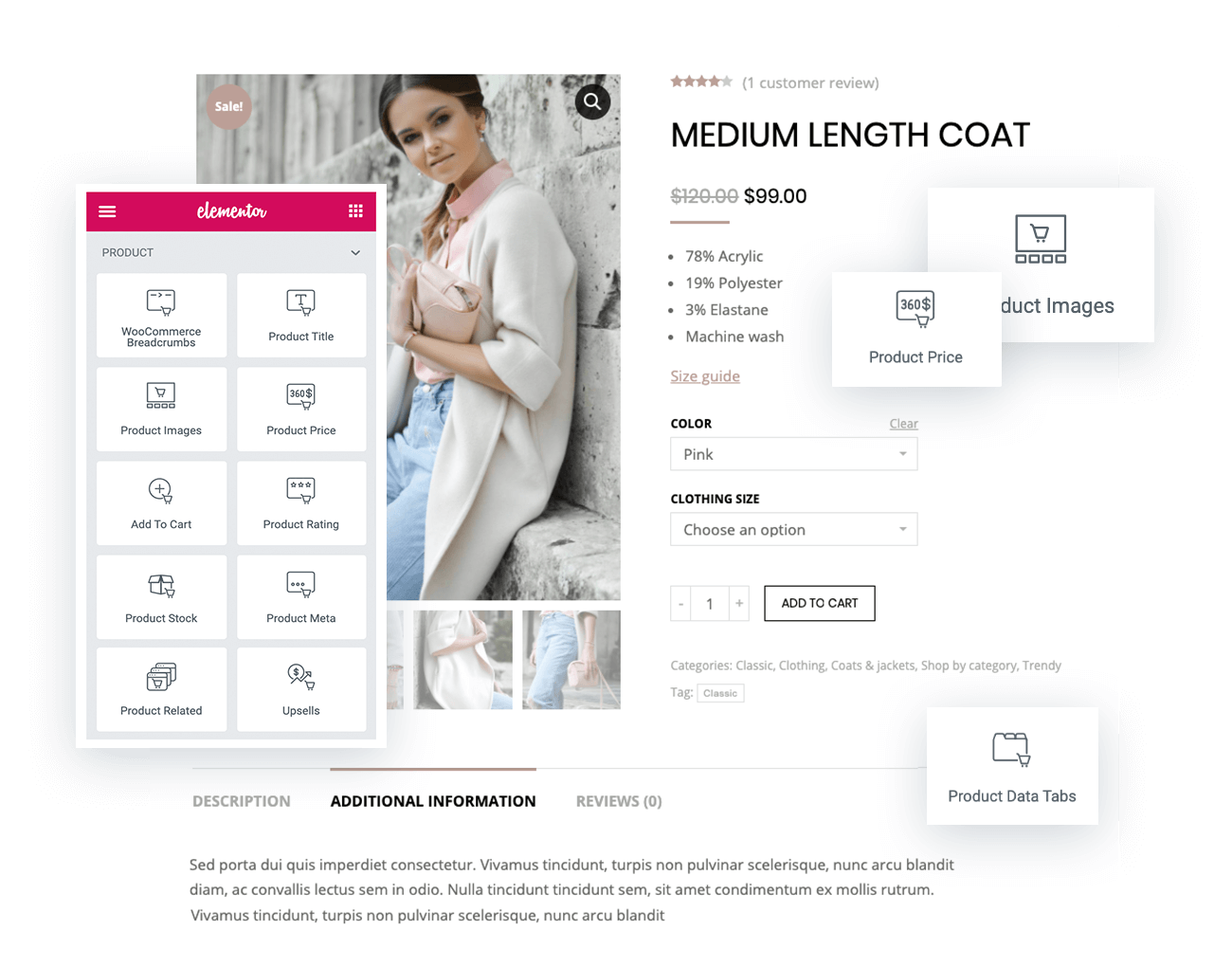 Make your store unique. Build bespoke templates for WooCommerce product pages and lists with Elementor. Apply them to all products or use selective display credentials.