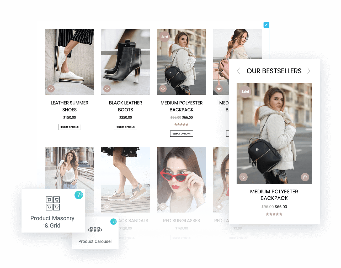 How about displaying select products from different categories on the homepage (or other pages)? Maybe a product grid? Or a fancy looking carousel? The7 has elements both for Elementor and WPB to do just that!